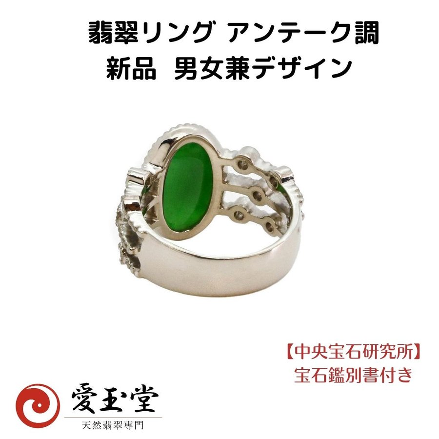 翡翠 アンティーク調【新品】 K18WG リング 日本製 手造り