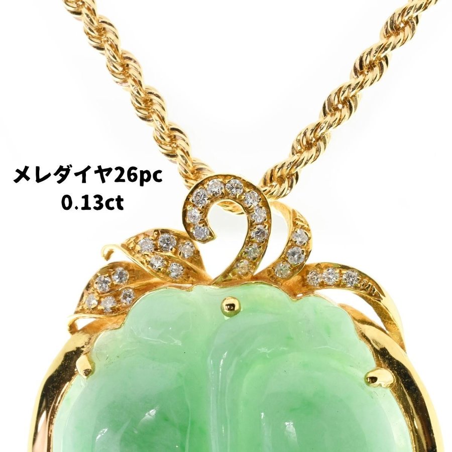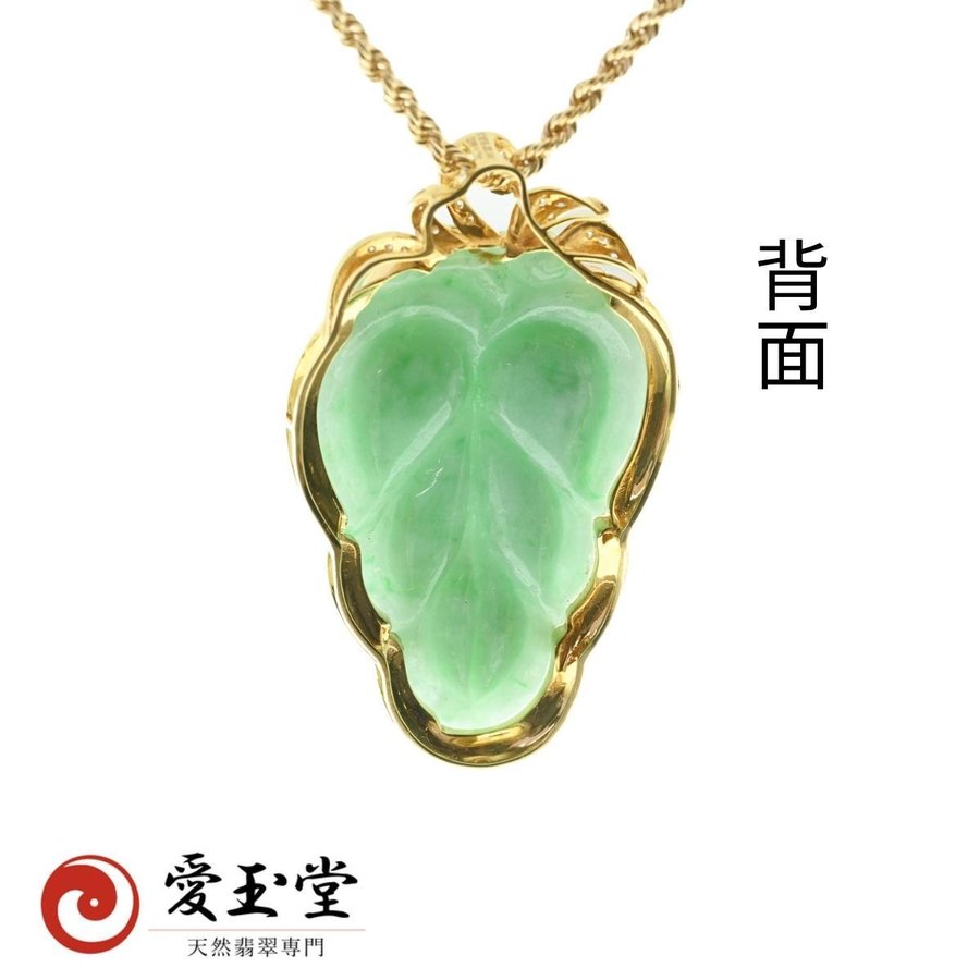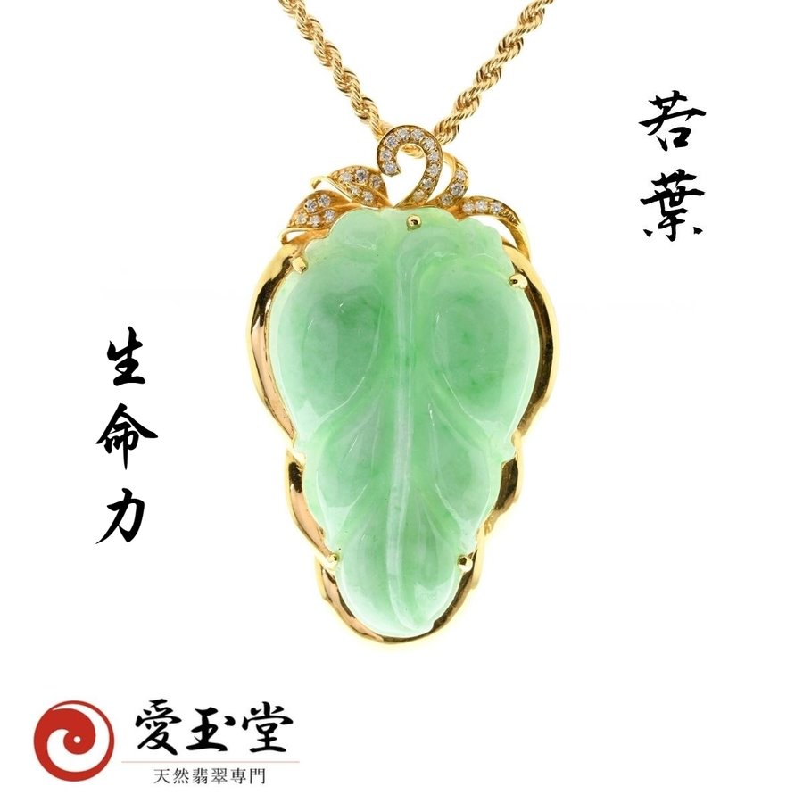 繁栄 若草 リーフ 翡翠 ひすい K18ペンダント・ロープチェーン付