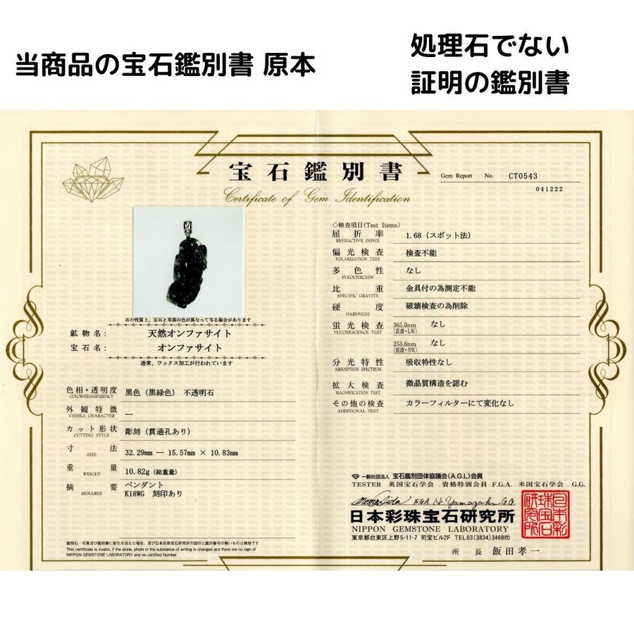 ≪ 日本彩珠宝石研究所 ≫ 宝石鑑別書付属