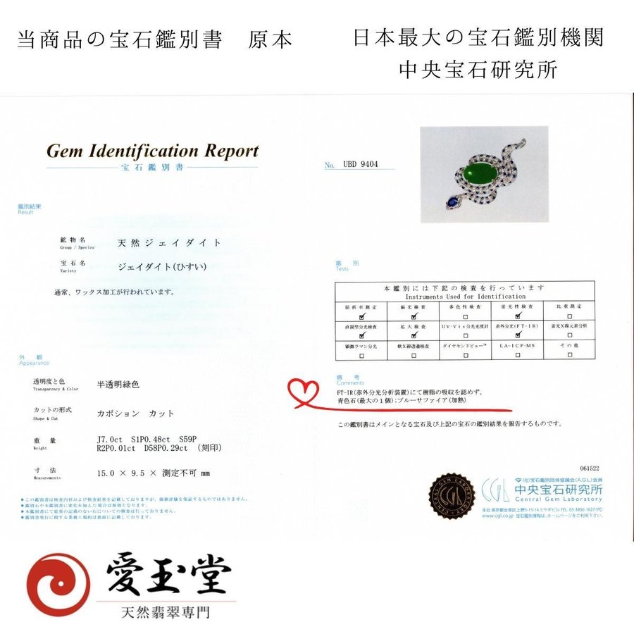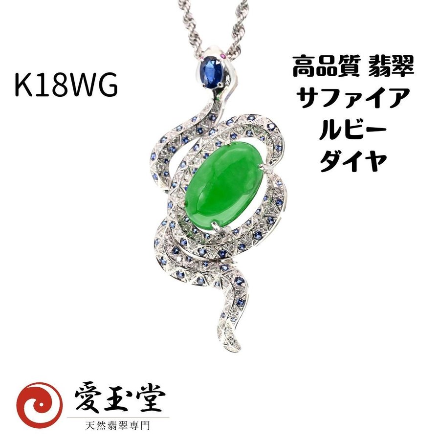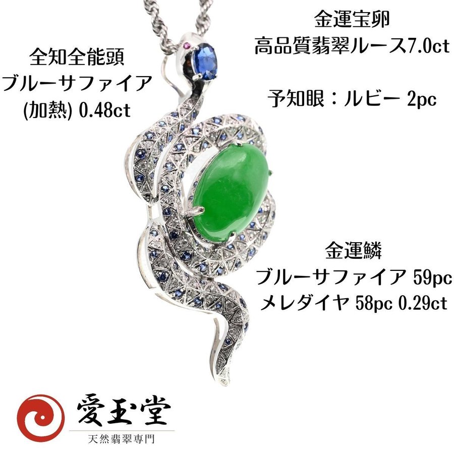 宝卵(翡翠) を抱く 金運蛇 K18WG ブローチ/ペンダント・ロープチェーン付