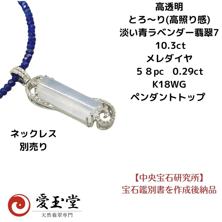 高透明・とろ〜り(高照り感) 淡い青ラベンダー翡翠 K18WG ペンダントトップ