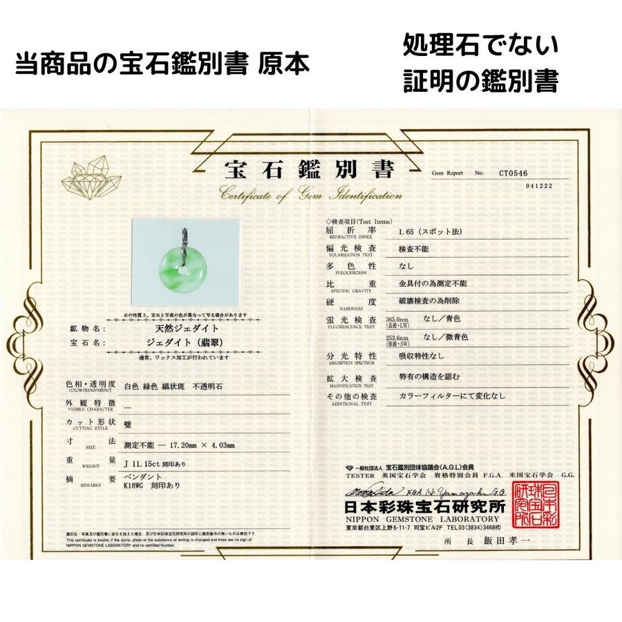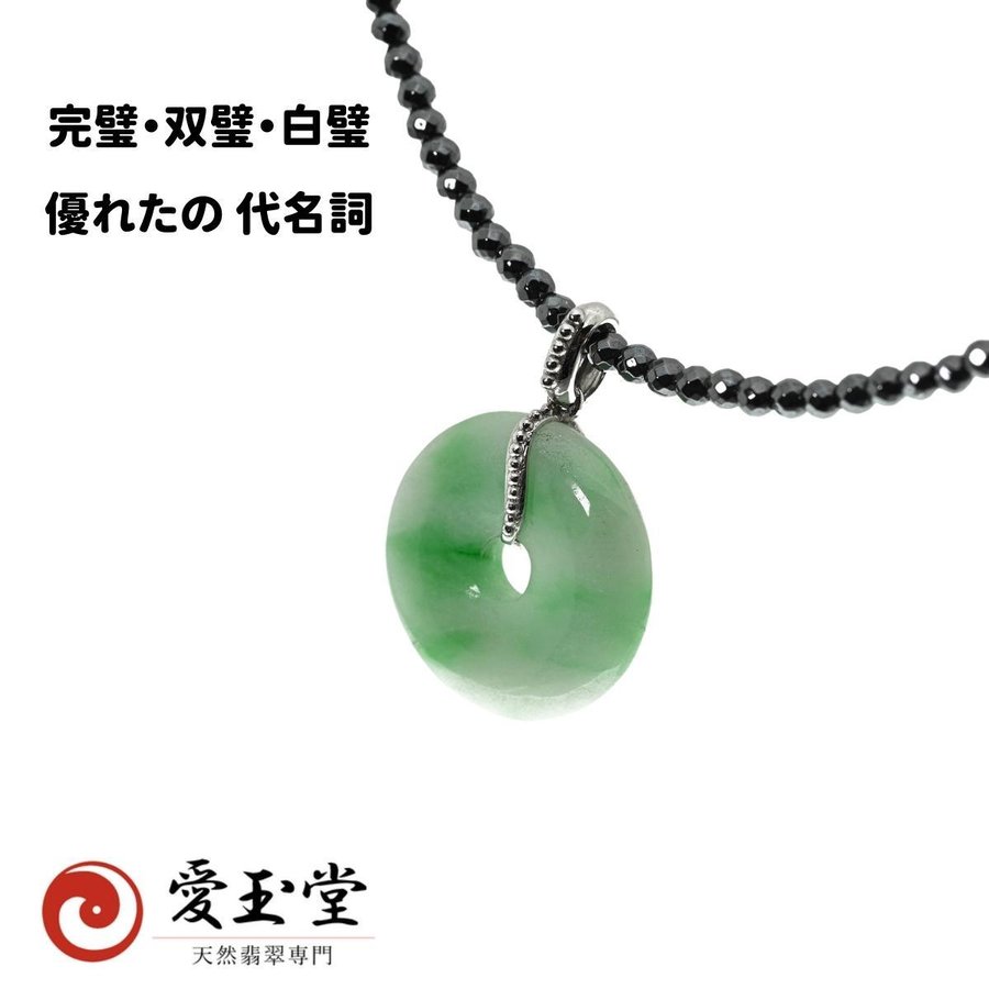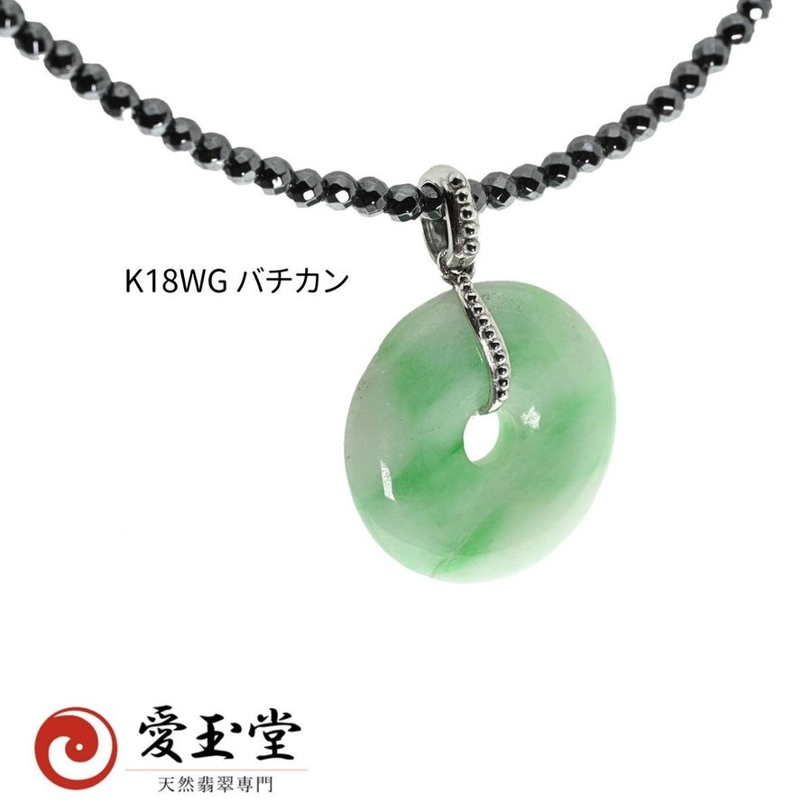 玉璧(完璧の語源)翡翠 ひすい K18WG ペンダント、テラヘルツ・ネックレス サービス