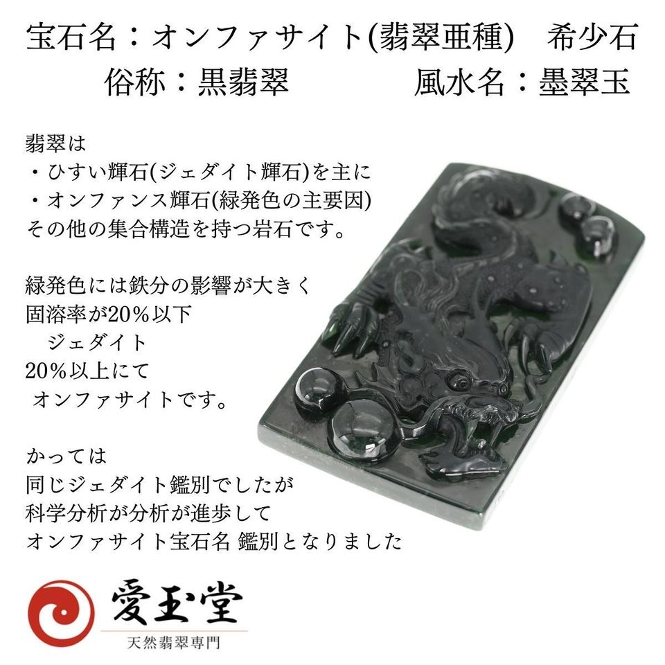 Deprecated: Return type of Eccube\Common\EccubeConfig::offsetUnset($offset) should either be compatible with ArrayAccess::offsetUnset(mixed $offset): void, or the #[\ReturnTypeWillChange] attribute should be used to temporarily suppress the notice in /home/xs393243/favotan.com/public_html/hisuiai.favotan.com/src/Eccube/Common/EccubeConfig.php on line 95 翡翠・天然ひすい専門・愛玉堂 / 龍 ハイクラス 希少 オンファサイト(翡翠亜種) 風水名:墨翠玉