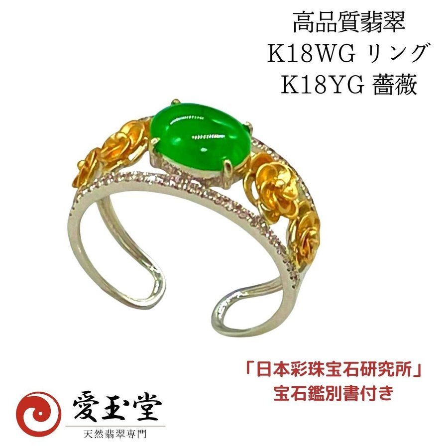 高品質 翡翠 K18WG リング K18YG 薔薇