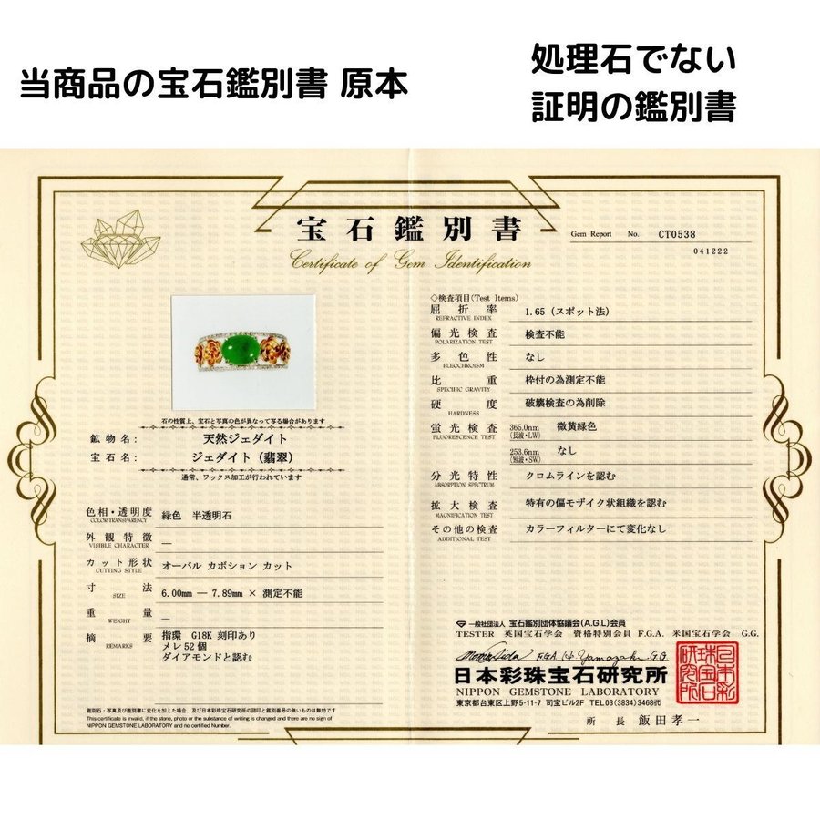 ≪ 日本彩珠宝石研究所 ≫ 宝石鑑別書付属